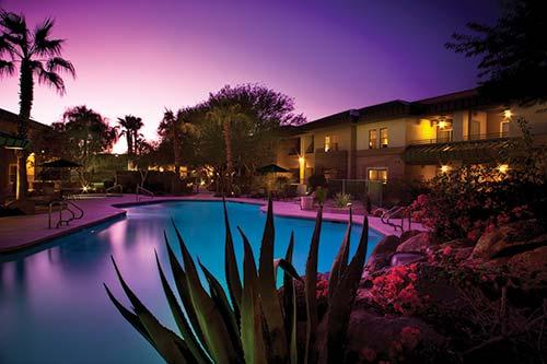 Scottsdale Resort Club is a private oasis located in the heart of Scottsdale. Enjoy accommodations ranging from one-bedroom villas to three-bedroom (plus den) presidential villas, all with gourmet kitchens and a private patio or balcony. Amenities on-site include a state-of-the-art athletic club with 11 world-class tennis courts, two pools, two levels of fitness studios, and unlimited fitness classes (Pilates, spinning, yoga, and more). The resort features the OC Seven Restaurant & Bar and the award-winning Eurasia Spa, which offers massage and body and facial therapies in Zen-like surroundings. Golf is found nearby.