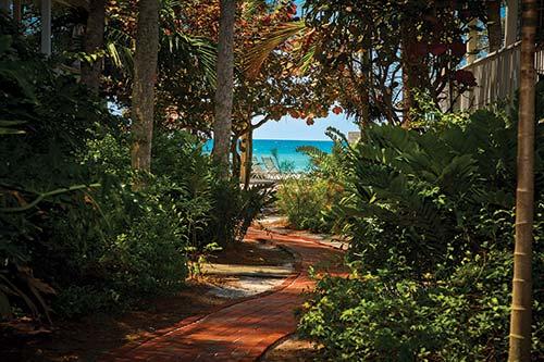 Little Gull features hidden cottages along a red brick road. Resort guests can enjoy swimming, fishing, bicycling, and simple relaxation. Little Gull stretches from the beach to Sarasota Bay, where you may dock your boat (three-boat maximum).